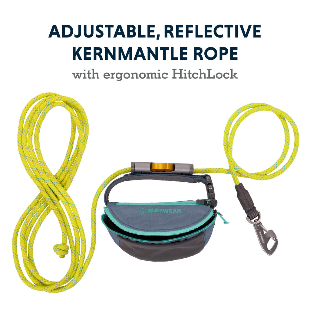 Die Ruffwear Hitch Hiker Leash ist eine besonders vielseitige Leine und zugleich tragbares Anbindesystem für aktive Hundehalter. Inspiriert von Kletter-Hardware kombiniert sie eine 3,65 m schwere, reflektierende Kernmantelseilkonstruktion mit einem ergonomischen HitchLock™-Seilversteller, einem Crux Clip™ Karabiner und einer komfortablen Stau-/Tragetasche. Du kannst sie als klassische Leine, als freihändige Leine um die Hüfte oder als mobiler „Hitch“ um Pfosten oder Bäume verwenden.