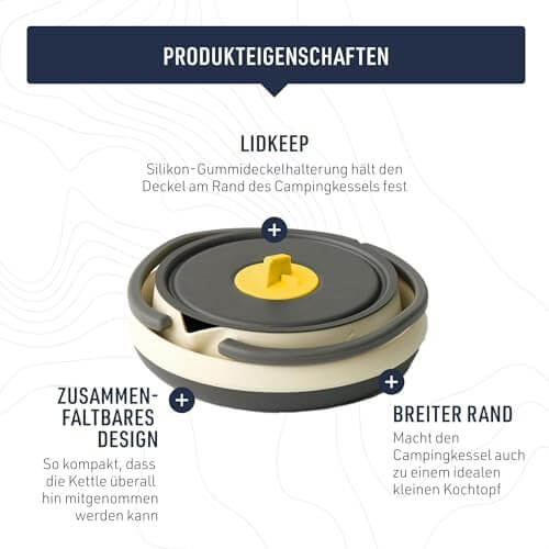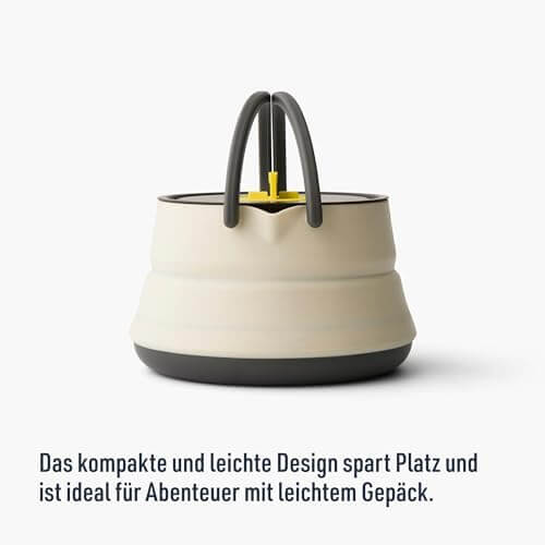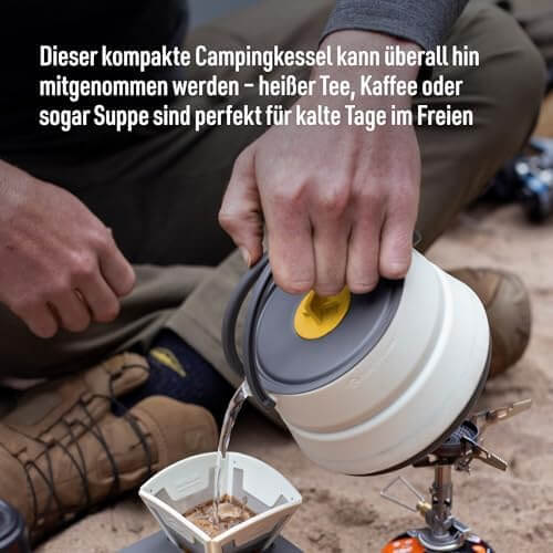 Der Boden besteht aus harteloxiertem Aluminium für optimale Hitzeverteilung, während die Seitenwände aus flexiblem, hitzebeständigem Silikon bestehen. Der Frontier Kettle fasst bis zu 1,1 Liter und ist kompatibel mit Gaskochern jeder Art. Dank festem Griff und präziser Ausgussöffnung gelingt dir das Ausgießen sicher und kontrolliert – ohne Tropfen oder Umkippen.