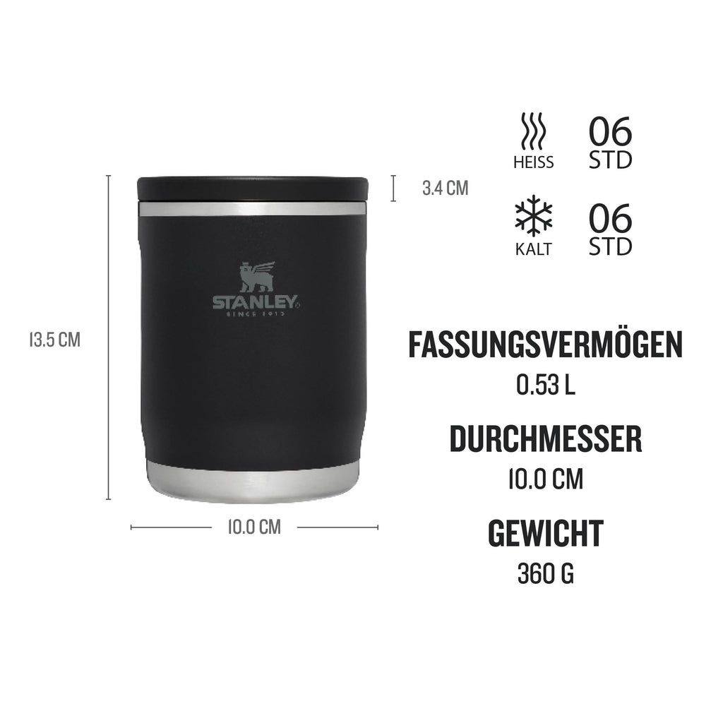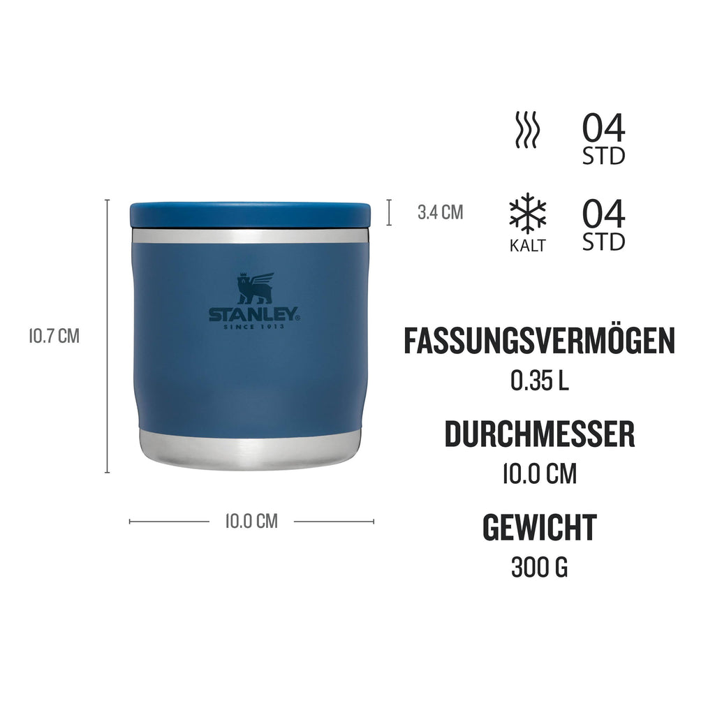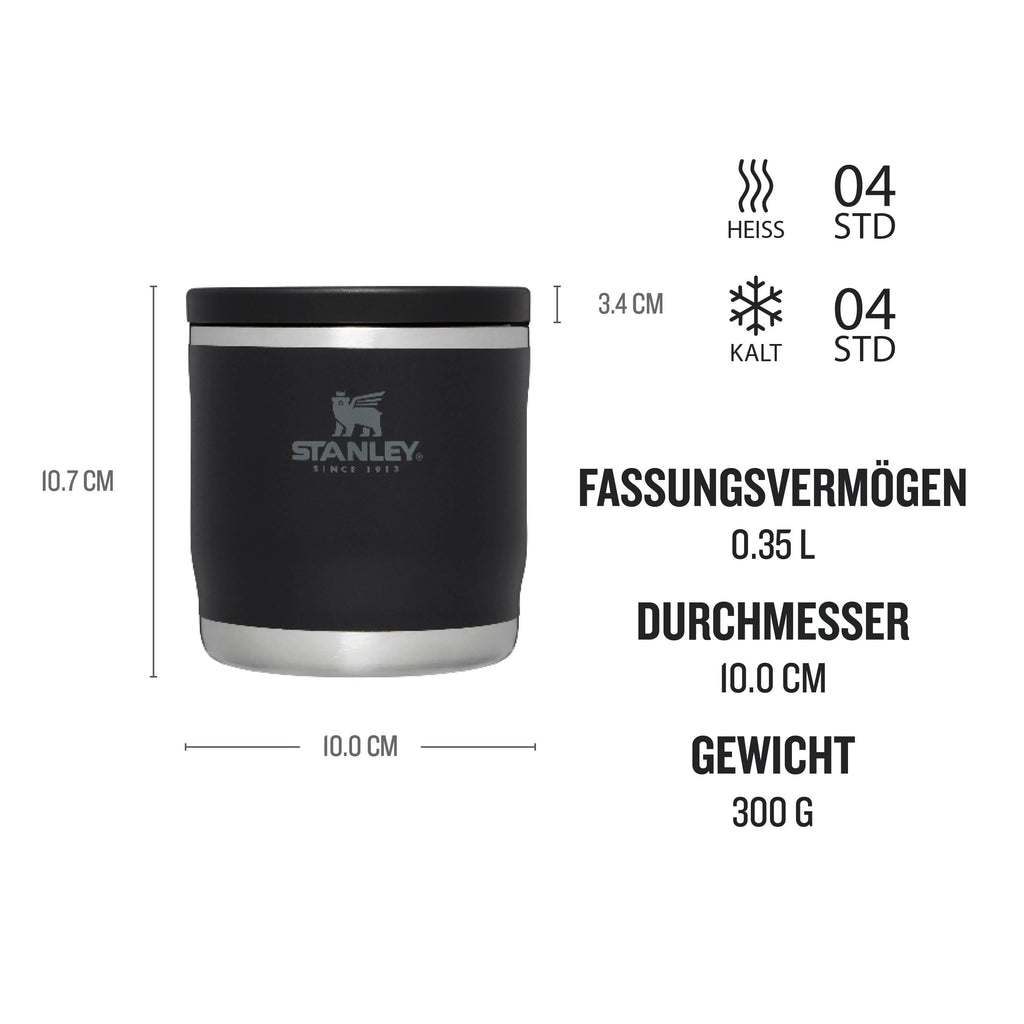 Der Stanley Adventure To-Go Food Jar ist ein kompakter, doppelwandig isolierter Edelstahl-Behälter für heiße oder kalte Speisen. Er ist robust, auslaufsicher und ideal für Arbeit, Alltag, Outdoor und Reisen.