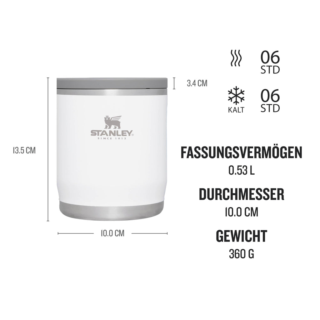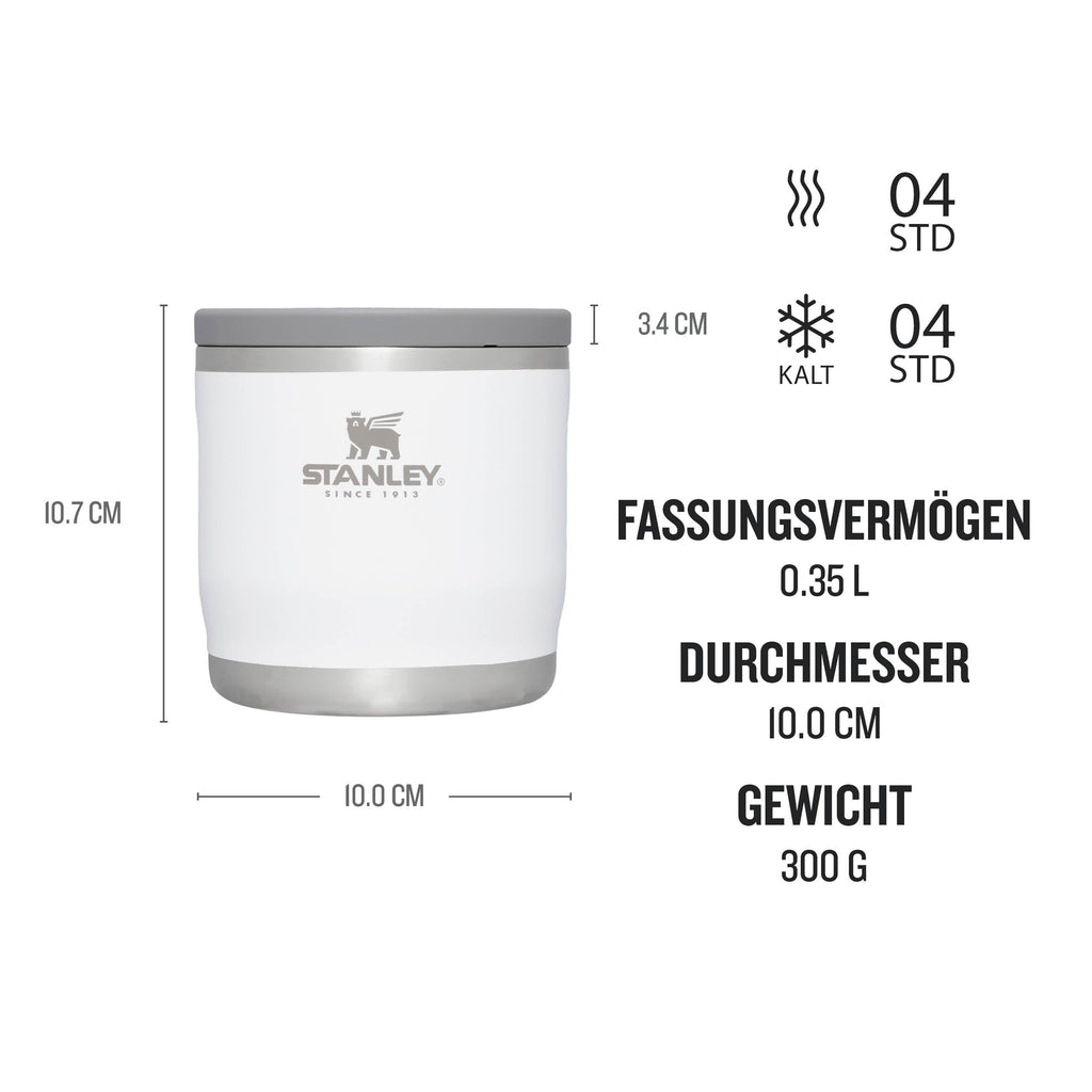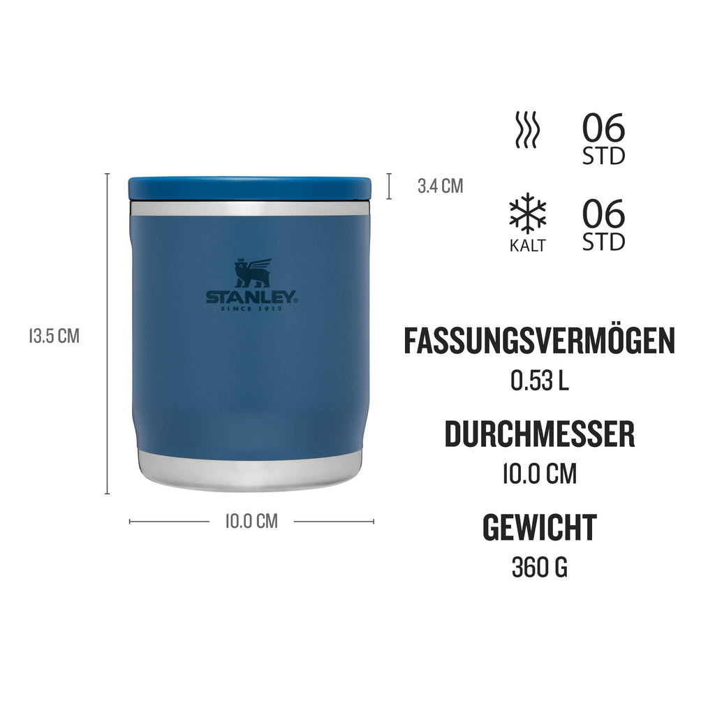 Der Stanley Adventure To-Go Food Jar ist ein kompakter, doppelwandig isolierter Edelstahl-Behälter für heiße oder kalte Speisen. Er ist robust, auslaufsicher und ideal für Arbeit, Alltag, Outdoor und Reisen.